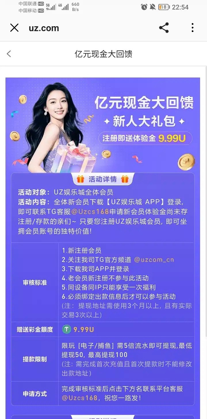 【UZ娱乐城】体验金9.99u
