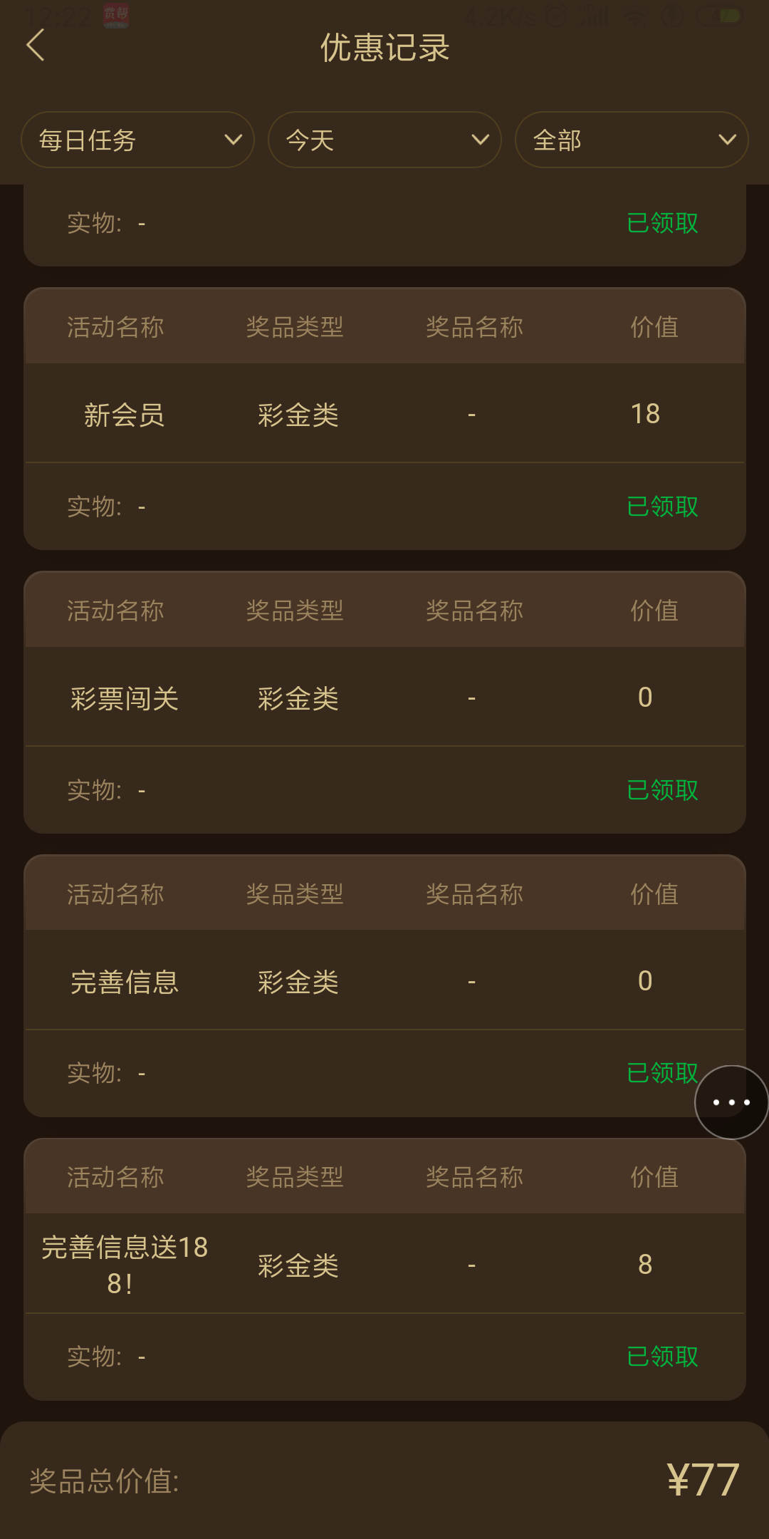 完成新人任务可领取8彩金,我出款了。